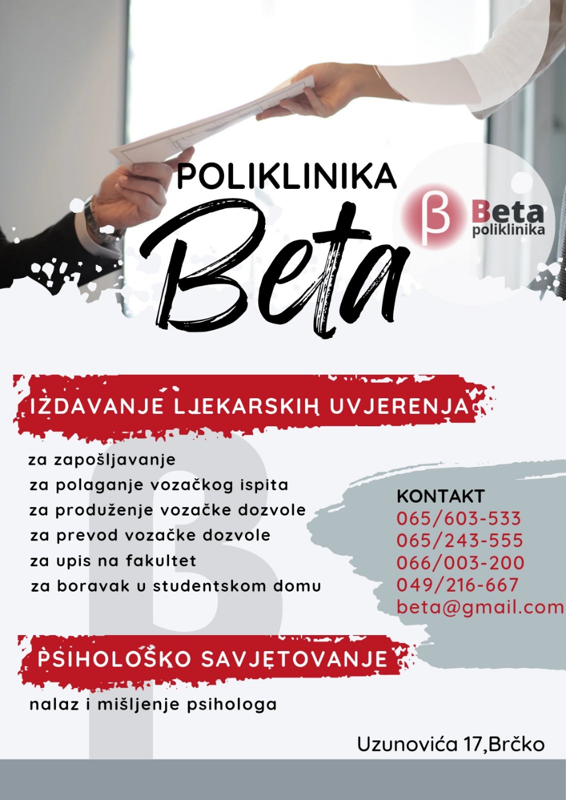 Privatnu prakse vodim u poliklinici ,,Beta’’ u Brčkom.